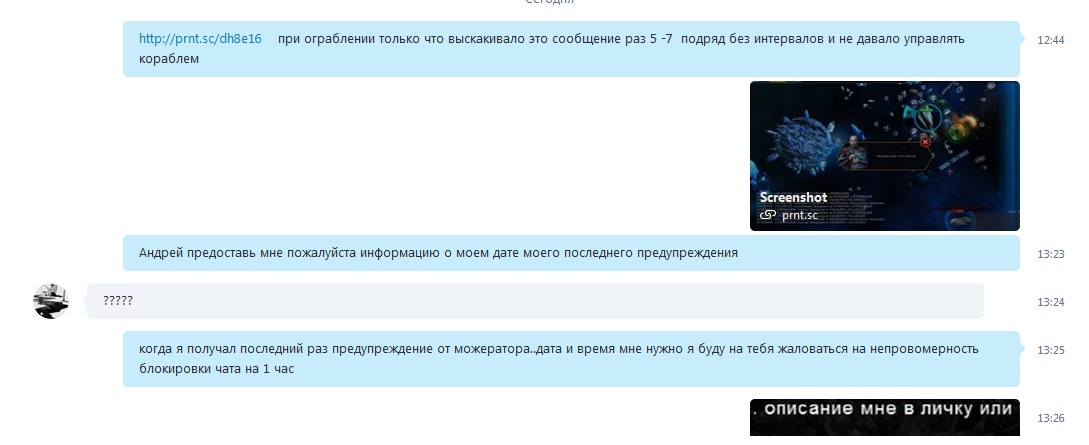 - в 13:00 по МСК 09.12.2016 после внеочередных технических работ я написал в чате сообщение (см. скрин ниже) после чего получил бан чата на 1 час