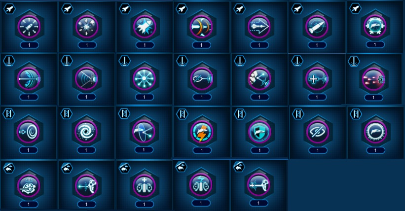А также улучшения по отдельности. Улучшения отличаются бронзовой, серебряной и золотой (улучшение, дающее больше преимущества по-сравнению с бронзой и серебром) отметкой.