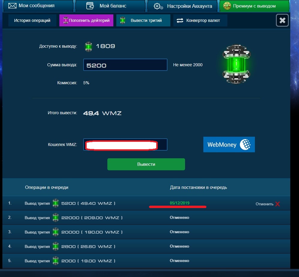 Вывод не закрыт, но временно приостановлен. Вы можете написать в поддержку и выкупить за свой тритий пакеты в "Специальных предложениях" или провести обмен трития на дейтерий.