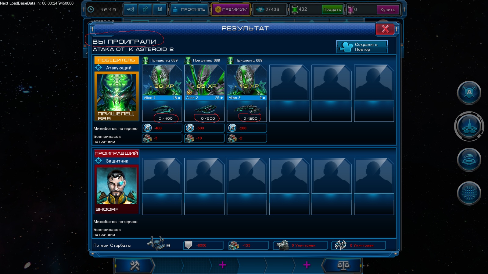 хах тоже самое))) когда онлайн и учавствуешь в защите то старбаза сама без повреждений виносит пришельцев. как только офф пришельци сразу же побеждают а вторая пушка оснащенная МЛ делает отсили пару вистрелов и сразу уничтожена)))