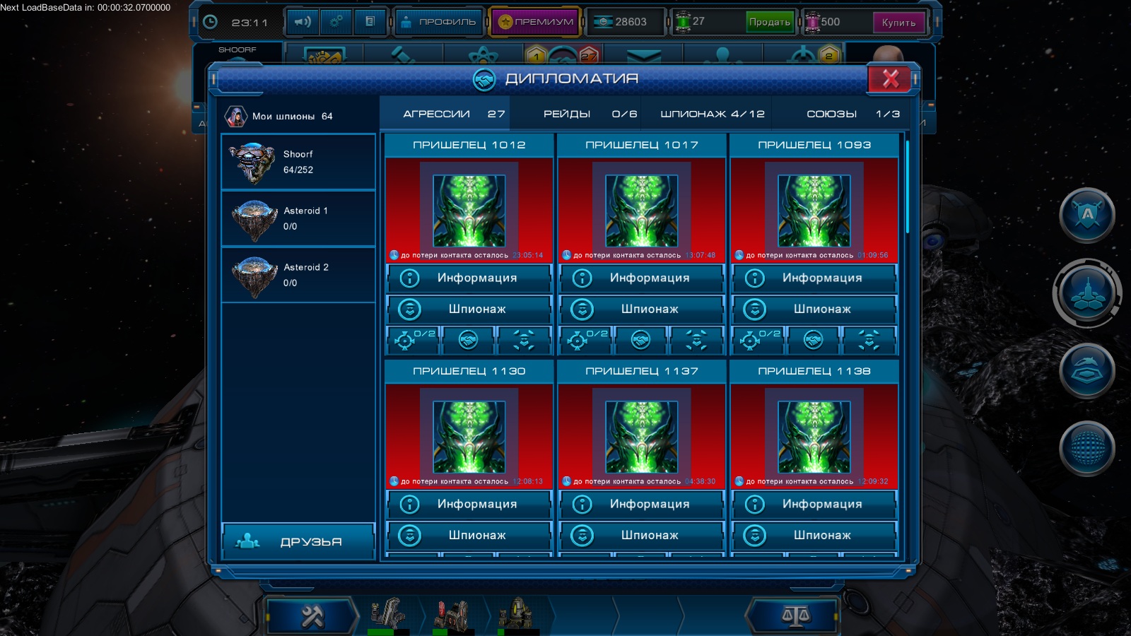 хахах тоже самое вот тока 5 подряд и разделяло только 2 минуты ) то есть за 2 мин надо было пришельца завалить и следующего сразу валить )) у пришельца причем с вместимостью доп бое припасов перебор написано 100 мах а на самом деле 170-190 просто кредиты уходят с кристаллами в некуда так как надо же для 2 пухи лазеры делать вообщем веселуха :lol: а вот ещё прикол захватил астеройд и через 18-20 дней чтоле он развалится и для того чтоб это не произошло придумали кнопку продлить жизнь астероиду всего лишь за 100 дейтерия мдя веселуха)) :lol: :lol: