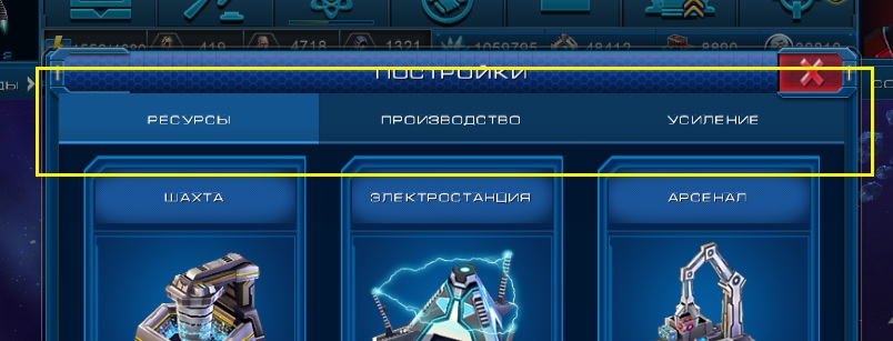 3. Панел кнопок в режиме стройки не похожа на кнопки. Нужно немного переработать, чтобы было понятно, что это 3 кнопки (ресурсы, производство, усиление), а не описание.